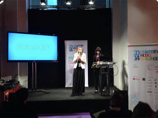 L’équipe SUPCOM présentant leur application devant le jury au MWC2014 à Barcelone, Espagne