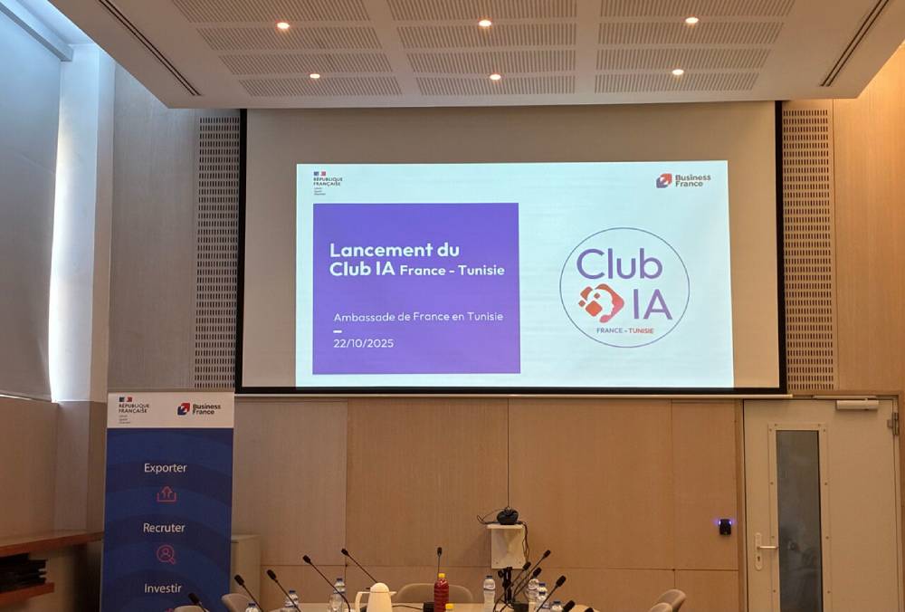 Mercredi 22 octobre, l’Ambassade de France en Tunisie a accueilli le lancement officiel du Club IA France-Tunisie, premier du réseau, en présence de S.E. Madame Anne Guéguen, Ambassadrice de France en Tunisie, et des représentants des trois institutions fondatrices : Business France représenté par Philippe Garcia,Directeur de la zone Afrique du Nord, la French Tech Tunis représentée par la Présidente Neila Benzina et la Caisse des Dépôts et Consignations (CDC) représentée par Nejia Gharbi, Directrice générale.