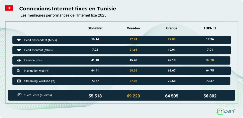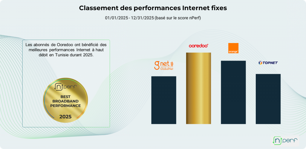 Ooredoo s’impose comme leader de l’Internet fixe en Tunisie pour l’année 2025, selon le baromètre annuel nPerf. Cette édition révèle une forte compétition sur les débits descendants et des progressions comprises entre 8,6% et 24,2%.