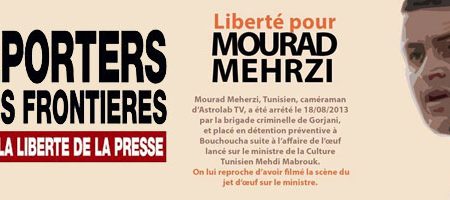 Reporters sans frontières réclame la libération immédiate de Mourad Meherzi. Aucune charge ne doit être retenue contre lui.