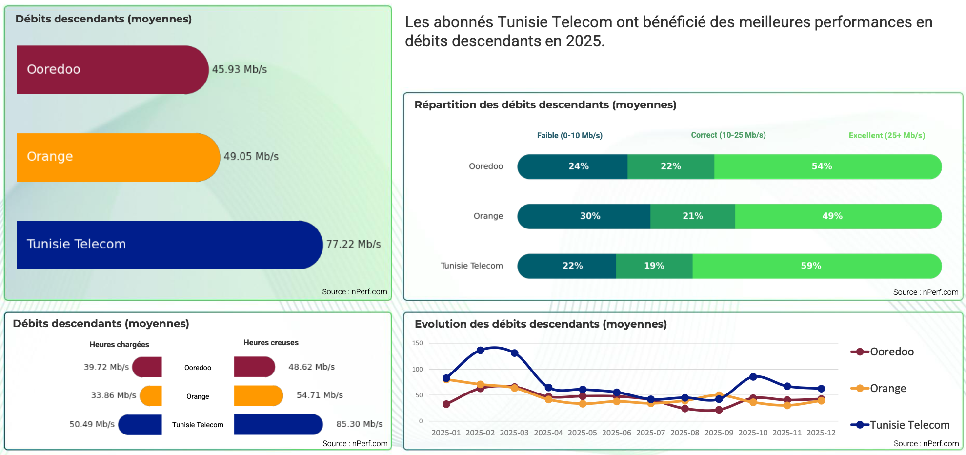 Meilleures performances de l’Internet fixe en Tunisie 2025 : nPerf classe ooredoo en pole position