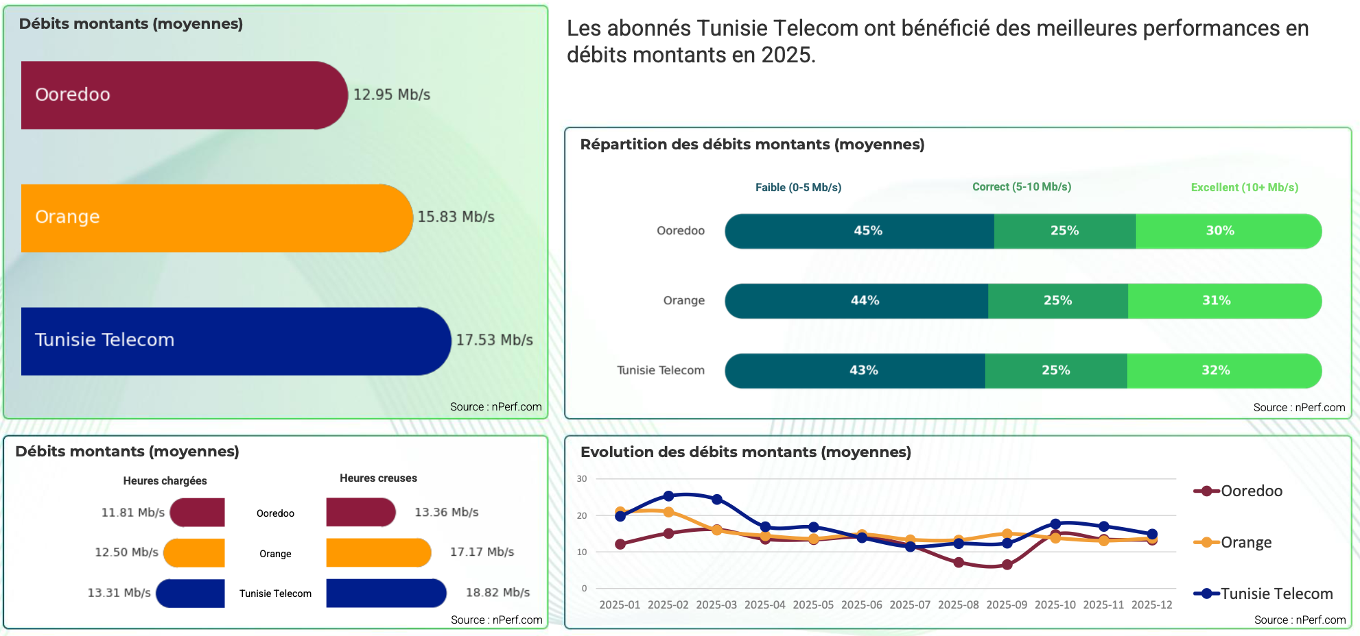 Meilleures performances de l’Internet fixe en Tunisie 2025 : nPerf classe ooredoo en pole position