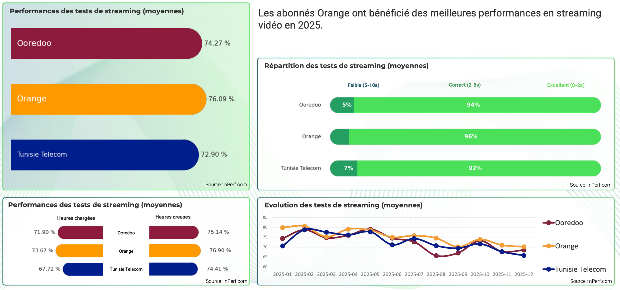 Meilleures performances de l’Internet fixe en Tunisie 2025 : nPerf classe ooredoo en pole position